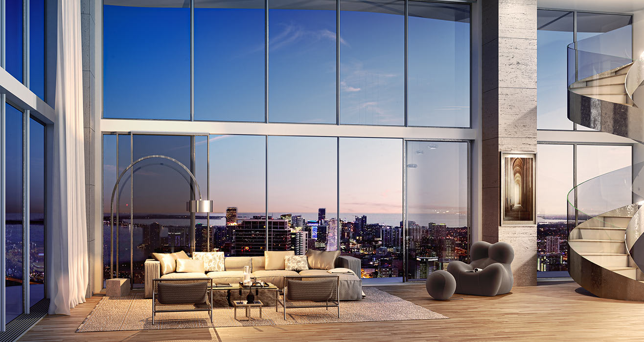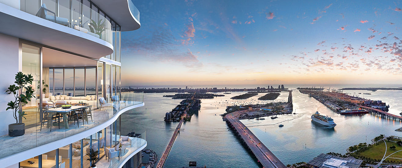Our exclusive Penthouse Collection includes 24 spacious penthouses with 11-foot ceilings and 4 Upper Penthouses with 12-foot ceilings. Two of the Upper Penthouses enjoy a private rooftop terrace, each designed with a summer kitchen and spa tub, set against incredible views of the ocean and Miami's Downtown skyline.