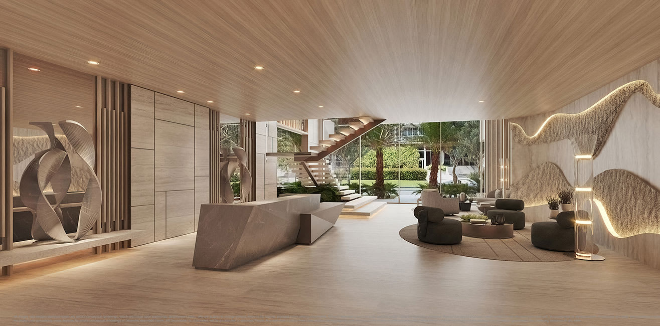 The Regency Collection is an oasis designed to stand apart for its beauty, sustainability, and overall sense of refined ease. This glass-clad modern building designed by Kobi Karp Architecture with a soft, natural interior palette created by Debora Aguiar Arquitetos features 33 residences. The waterfront location offers boat slips, waterside amenities, and a landscaped rooftop pool deck. The interiors are designed with the outdoors in mind. Large terraces function as outdoor rooms and create a true indooroutdoor living. Glass-clad, with no solid walls to the outside, these airy residences bring in direct sea breezes that flow from room to room—the kitchens, bedrooms, and bathrooms all get natural light and ventilation. The architect's intention with this element of the design is to reconnect to the natural environment, which is ideal for this prime bayfront setting.