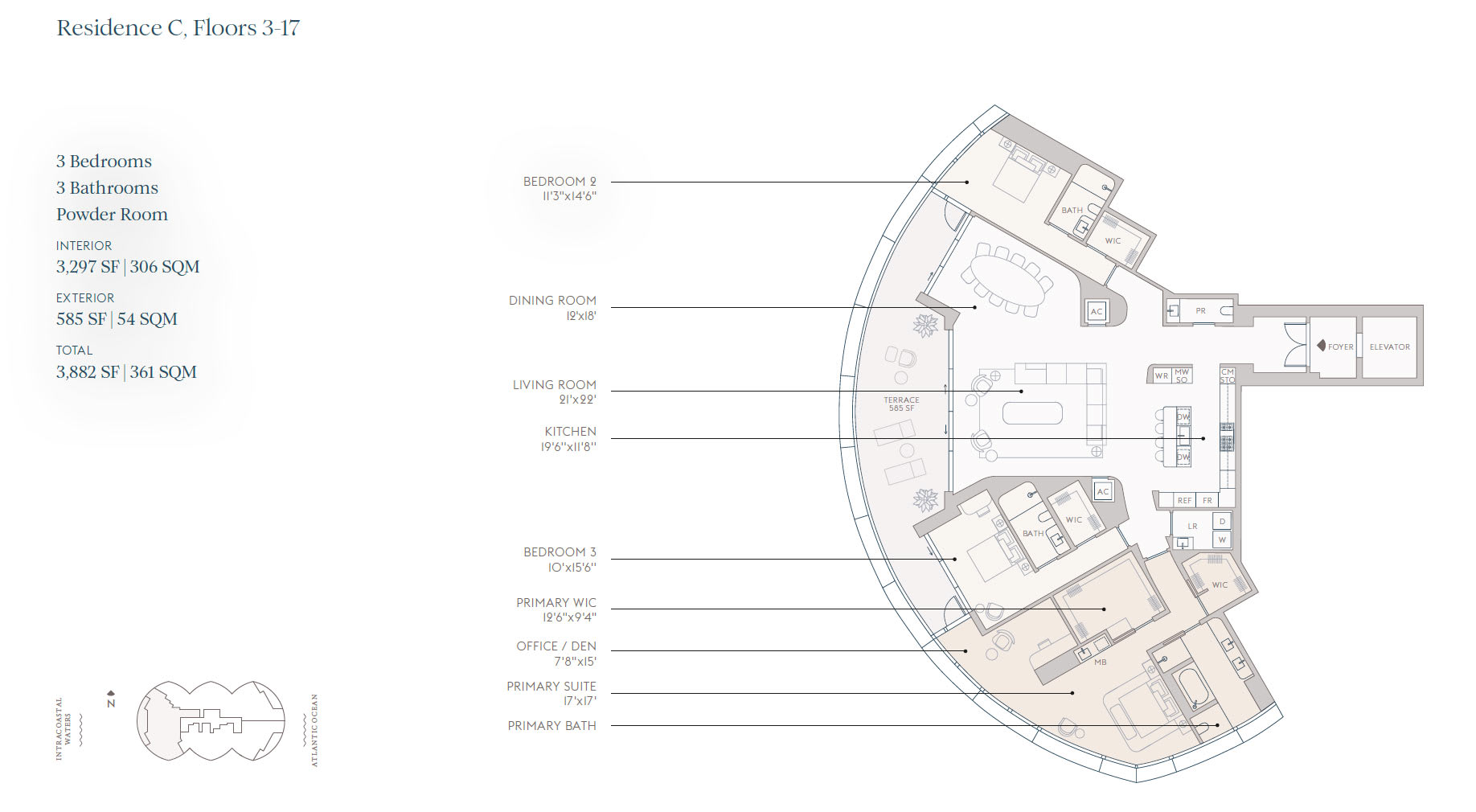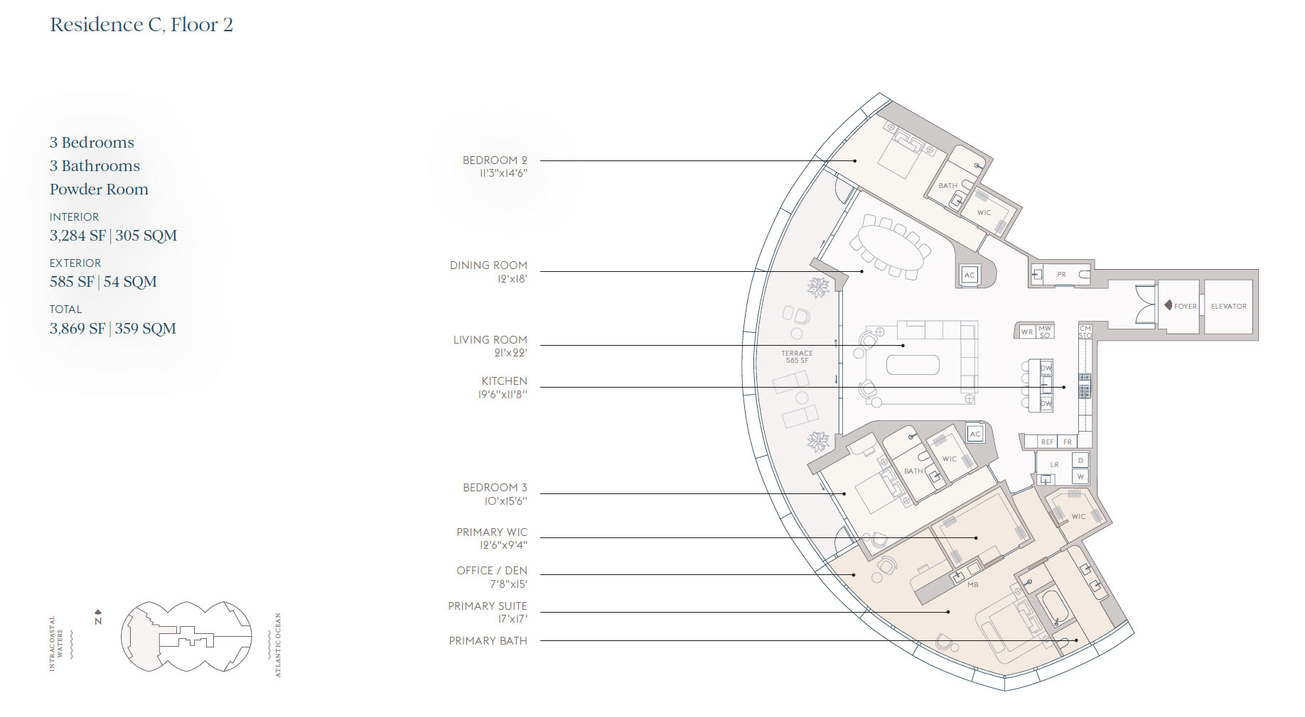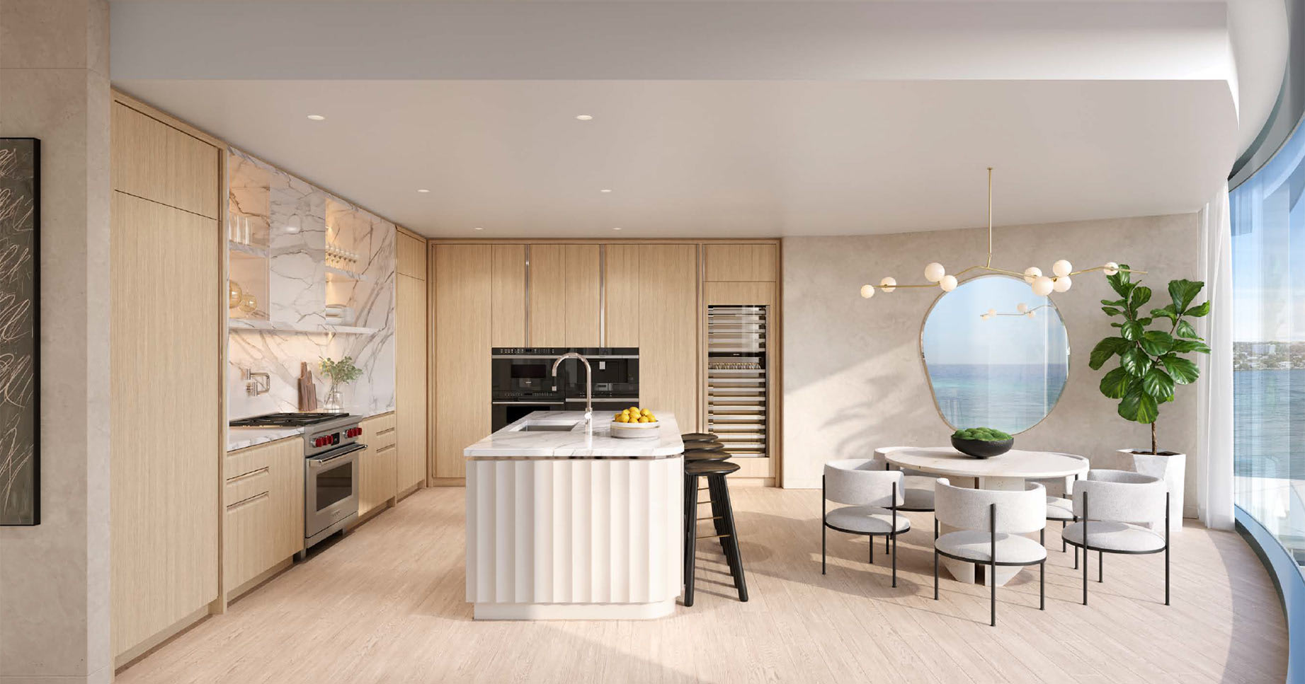 These four- and five-bedroom residences all feature sweeping views of the Atlantic Ocean. The large scale of these grand villas — with their generous balconies, large windows and private elevators — creates the impression of entirely separate single-family homes floating in the clouds. Every exquisite element is designed with impeccable attention to detail.