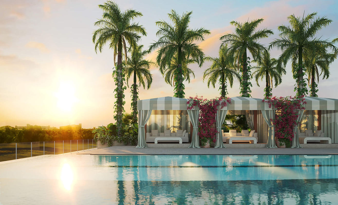Atop the 20-story tower, surrounded by sweeping golf course views, members enjoy an expansive 14,000-square-foot pool terrace designed for all-day enjoyment and relaxation.