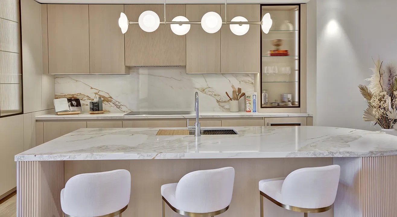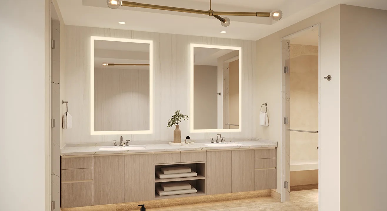 Expansive glass-railed terraces and floor-to-ceiling window walls seamlessly merge indoor and outdoor spaces and infuse a captivating natural glow into every residence at Solana Bay. Timeless neutrals and textures embody a heightened level of sophistication.
